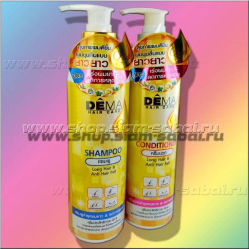 Сет для роста волос против выпадения волос Dema Genive DEMA Genive Long Hair Fast Growth Shampoo and Conditioner 265 ml Комплексный уход для тех, кто решил отращивать волосы и для борьбы с выпадением волос набор 265 мл шампунь и 265 мл кондиционер для волос от тайского производителя линейки косметики по уходу за волосами бренда Genive. Новая серия ухода для волос Dema содержит в составе комплекс лекарственных растений и коэнзим Q10 и позволяет решить сразу 4 проблемы поможет устранить ломкость и сечение волос, оздоровить кожу головы плюс устранение перхоти и зуда, простимулировать рост волос из спящих волосяных луковиц, а также улучшить внешний вид и усилить блеск волос. В новом наборе от Genive шампунь против выпадения волос и для ускорения роста волос 265 мл плюс кондиционер Dema также 265 мл. Произведено в Таиланде.