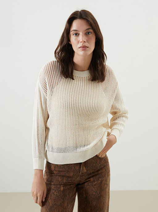 • Bisiklet Yaka Ajurlu Oversize Kad?n Triko Kazak