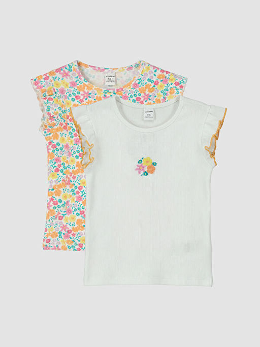 Bisiklet Yaka Bask?l? K?z ?ocuk Atlet 2li