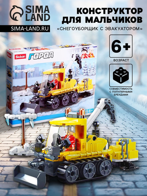 Из этого конструктора ребёнок соберёт модель снегоуборочной машины. Служебный автомобиль дополнит игрушечный городок и сделает его более реалистичным.ХарактеристикиВ наборе конструктора 145 деталей.Фигурка водителя входит в комплект.Размер машинки: 23,7 18,9 4,5 см.Среднее время сборки конструктора: около 90 минут.Набор упакован в яркую и красочную коробку, поэтому подойдёт в качестве подарка на день рождения, Новый год, 23 Февраля или без повода, чтобы порадовать непоседу.Развиваемся, играяСборка конструктора потренирует мелкую моторику, логическое и пространственное мышление, творческие способности и память. Игры с техникой развивают фантазию и способность придумывать разные сюжеты.В серии представлены и другие виды транспорта. Соберите их все и постройте целый игрушечный город! Возраст: От 6 лет. Среднее время сборки, мин: 90. Количество элементов: 145. Тематика конструктора: Город. Уровень сложности: Средний. Бесплатная доставка: Да. Размеры товара: 18.9/4.5/23.7.