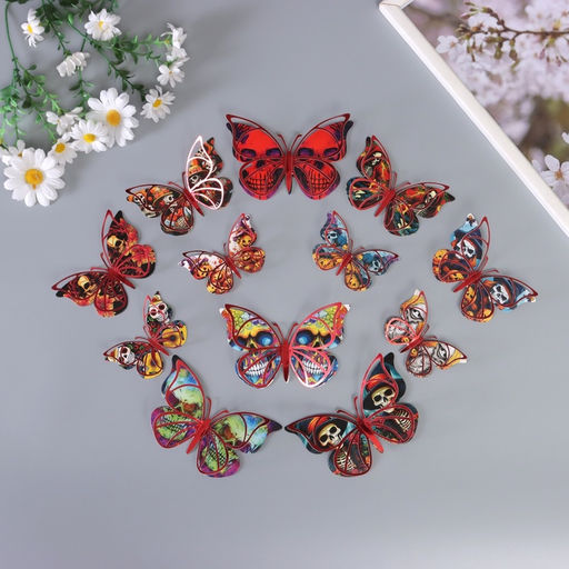 • Наклейка бумага, пластик Бабочки на Хэллоуин, красные, набор 12 шт.