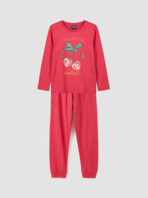 Bisiklet Yaka Bask?l? K?z ?ocuk Pijama Tak?m?