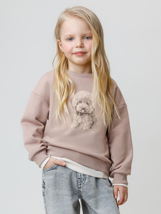 Мягкий свитшот для девочки из высококачественного футера трёхнитки. Обтачка горловины, манжеты и пояс выполнены из эластичного полотна. Для удобства в размерах 92 и 98 на спинке имеется застёжка на кнопки. Оригинальный принт выполнен из стойких текстильных красителей. Свитшот сохраняет форму и стойкий цвет после многочисленных стирок и идеально подходит на каждый день. Все трикотажные полотна производятся в соответствии с нормами швейцарского сертификата ЭкоТекс.. Состав: 80% хлопок, 20% полиэстер
