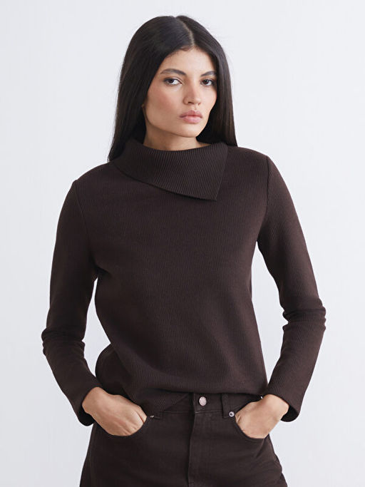 Asimetrik Dik Yaka Kad?n Triko Kazak