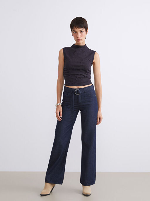 Beli Kemerli Wideleg Kad?n Jean Pantolon