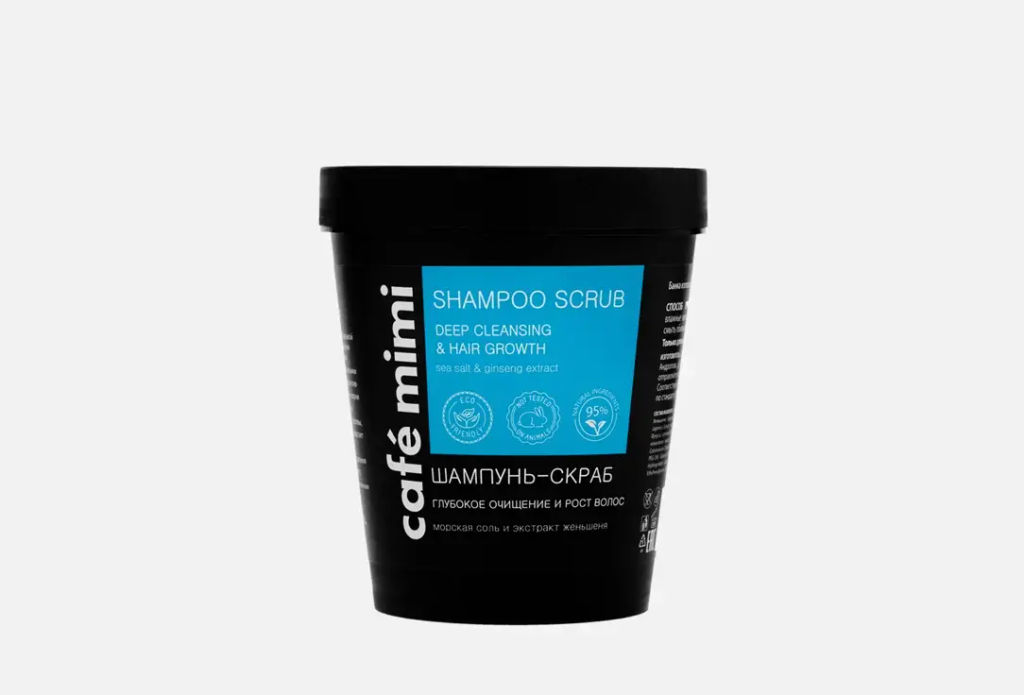 • CAFE MIMI Шампунь-скраб Глубокое Очищение и Рост волос(стакан) 330г