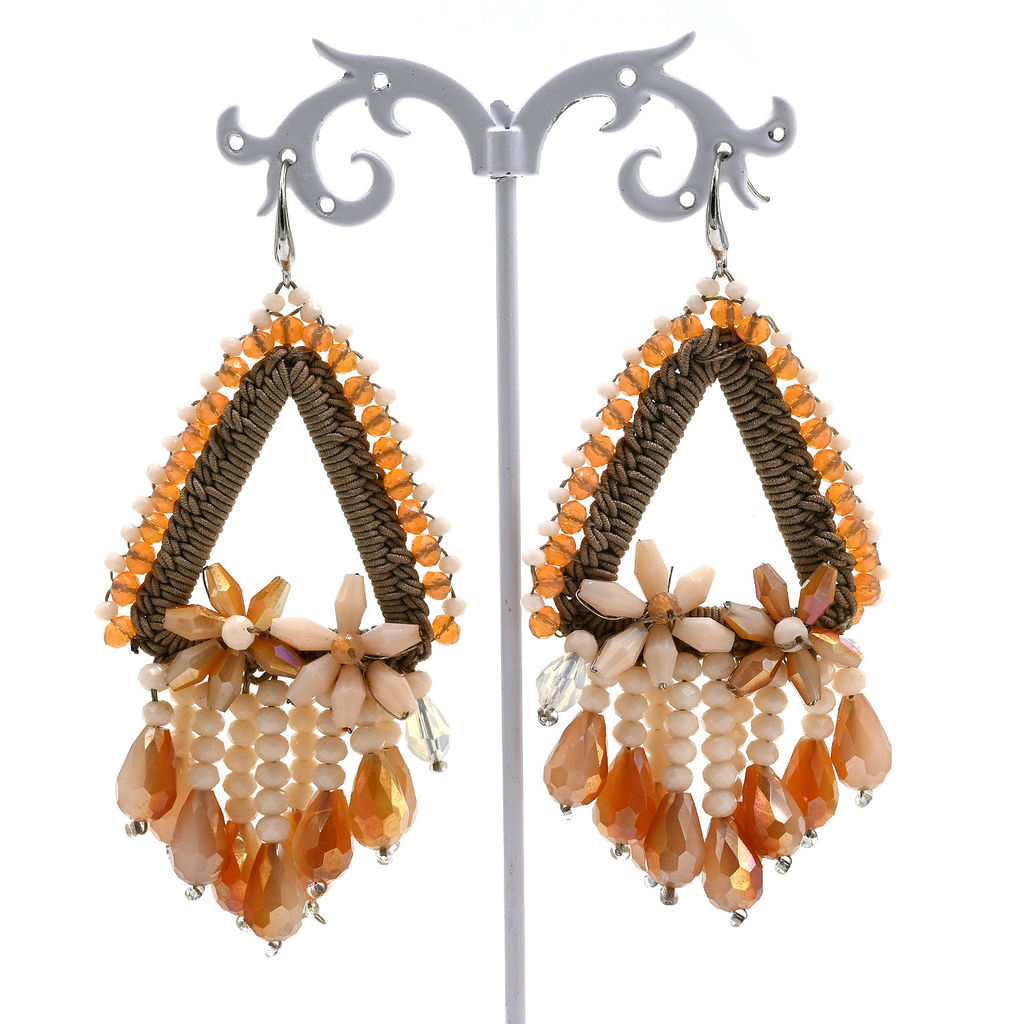 Серьги ручной работы с цирконами в оплетении цв.крем