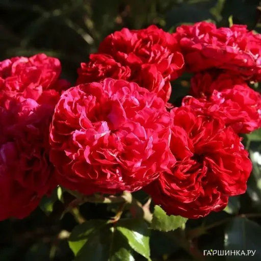 куст до 1,6 м высотой и не более 0,7 м шириной. Стебли жёсткие и толстые, при этом их поверхность густо усеяна шипами. Листва плотная, изумрудного цвета. Цветы крупные, диаметром 10 см, густомахровые, темно-красного и малинового цвета. Аромат средний. Цветение повторное. Зона 6.