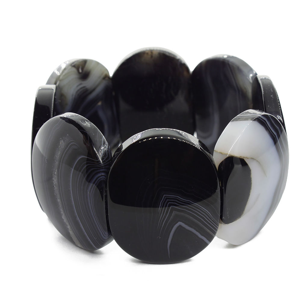 Браслет на резинке из крупного чёрного агата - роскошное украшение для роскошных женщин. Длина изделия 21см, размер бусины 28х38мм.