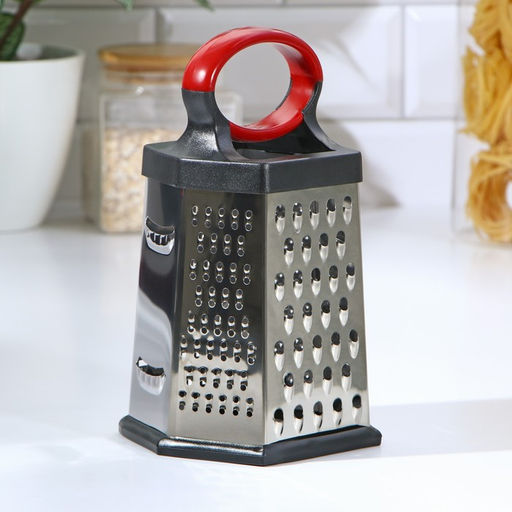 Тёрка шестигранная Доляна «Нео», 12.5×10.5×20.5 см, прорезиненное дно, чёрная, красная