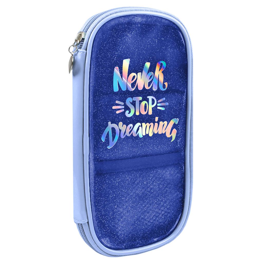 Пенал школьный, арт.53924/ 25 ГОЛУБОЙ (без наполнения, 11х21х2,5 см, глиттерный ПВХ, искусственная кожа, молния, глиттерный ПВХ, печать фольгой, ПЭТ-пакет).