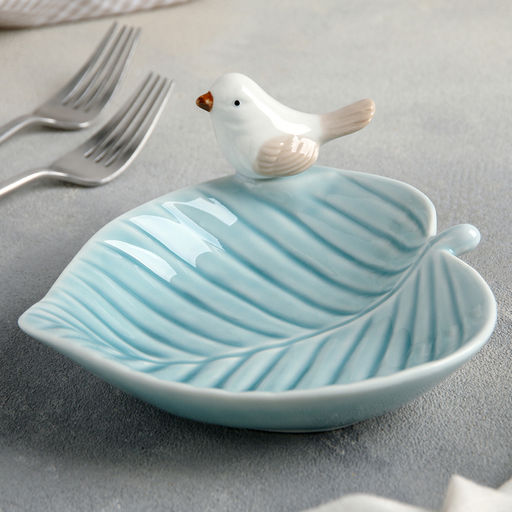 • Блюдо керамическое «Птичка на листочке», 15.5×15.5 см, цвет голубой