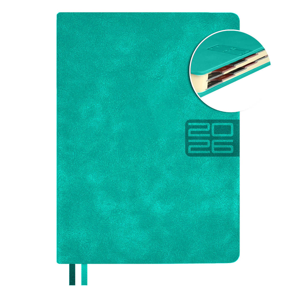 Ежедневник датированный 2026 ESCALADA, #ДУМАЙ КАК МИЛЛИАРДЕР, А6+, 176 л., арт. 70295/ 20 ТИВОЛИ ГЛОСС БИРЮЗОВЫЙ (кожзам: 126x174 мм, твёрдый переплёт, запаянный край, материал обложки: искусственная кожа "Тиволи глосс"; декор: блинтовое тиснение; способ крепления блока: ниткошвейный; вн. блок: 176 л., тонированный офсет 70 г/м?, печать в две краски (линия), справочный материал: есть; перфорация углов блока: есть; закладка/-и: два ляссе; каптал: есть; форзац: печать пантоном; особенности: вырубка блока по месяцам, в блоке использованы мотивирующие высказывания экстраординарной личности, предпринимателя и миллиардера, титулованного Провидца века, шоумена и телеведущего, бывшего владельца конкурса красоты Мисс Вселенная и дважды президента США Дональда Трампа; персонализация возможна: да; индивидуальная упаковка: промостикер + ПЭТ-пакет)