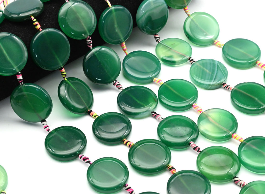 • Бусины из агата тонированного круг 30мм цв.зеленый, 37см, 10 бусин Радуга камня