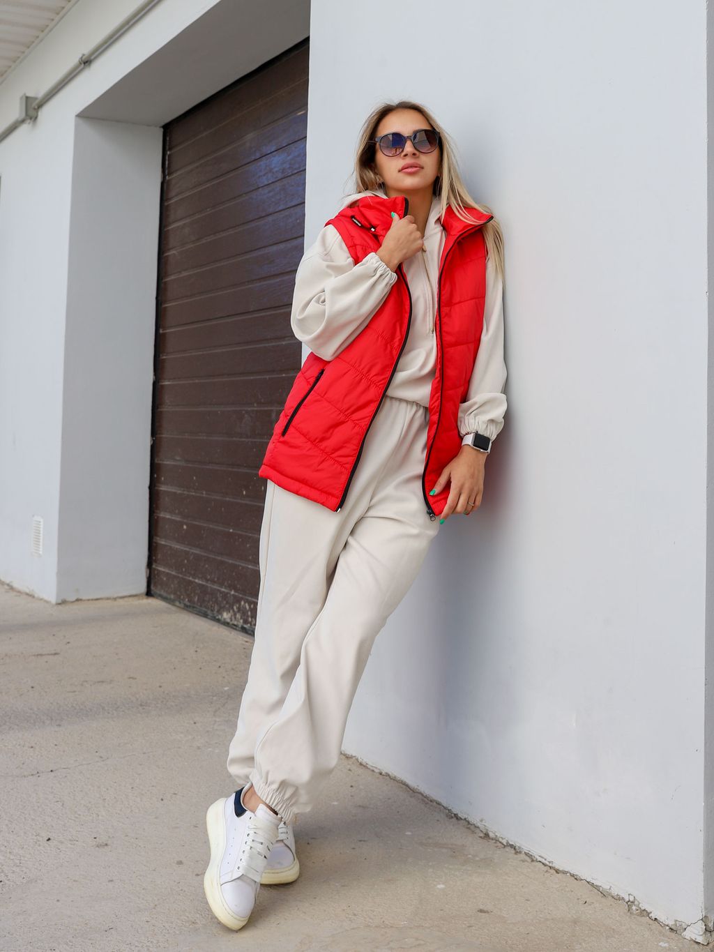 Жилетка женская, безрукавка. Съемный капюшон, высокий воротник.