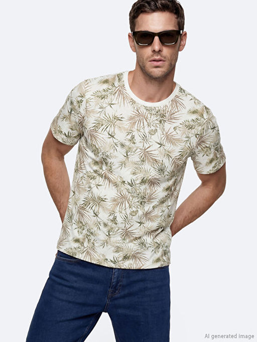 • Bisiklet Yaka Desenli Penye Erkek Ti??rt