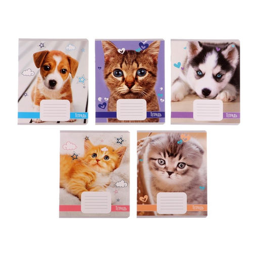 Цена за 20 шт. Тетрадь 18 листов в линию Calligrata "Домашние животные", обложка мелованный картон, ВД-лак, блок офсет, белизна 95%, МИКС