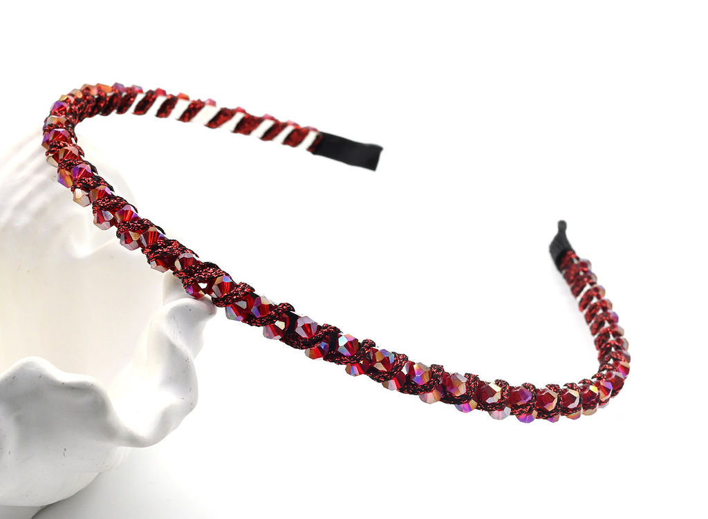 • Ободок для волос с цирконом, цвет красный