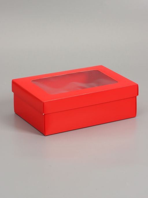 Цена за 5 шт. Коробка складная, крышка-дно, с окном, красная, 24×17×8 см