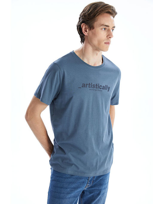 • Bisiklet Yaka K?sa Kollu Bask?l? Penye Erkek Ti??rt