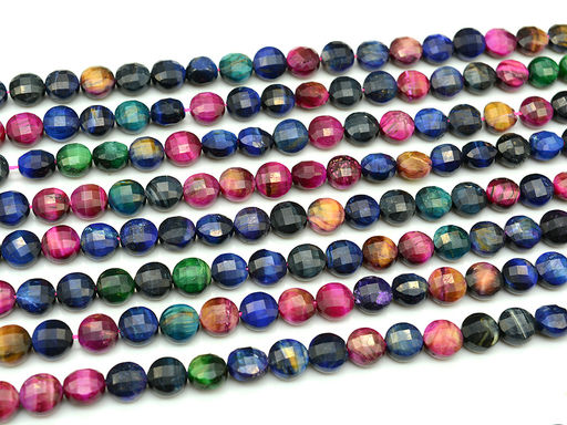 • Бусины из тигрового глаза круг огранка 10мм микс, 38см, 38 бусин Радуга камня