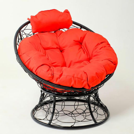 • Кресло садовое «Папасан мини», 77×81×68 см, с искусственным ротангом, чёрное, с красной подушкой