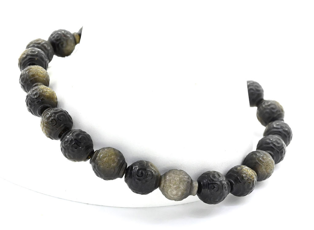 Браслет из Обсидиана шарик резной 7мм, 10г