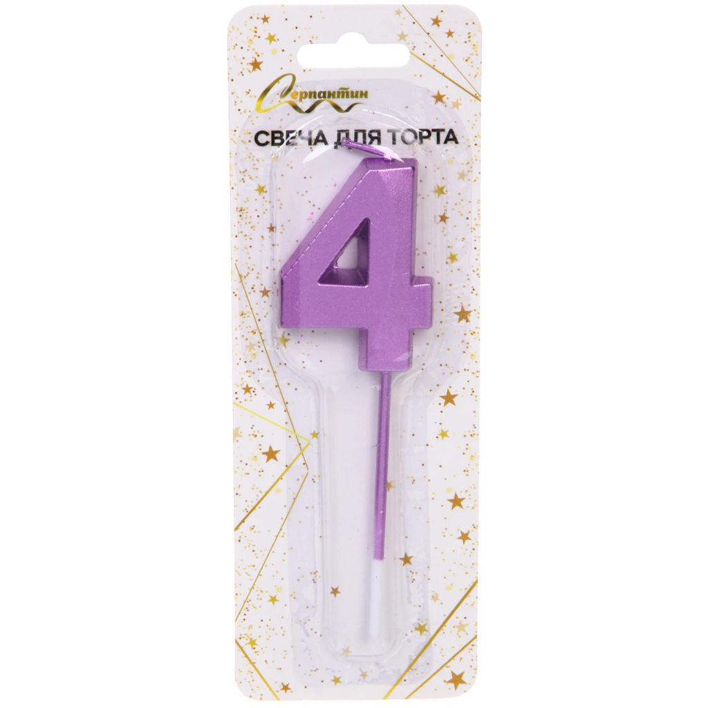 Свеча для торта Цифра Волшебство "4" 12 см, фиолетовый