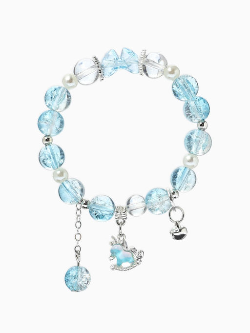 • Браслет с подвесками "Сахарный" лошадка, шар №10/8, цвет бело-голубой в серебре