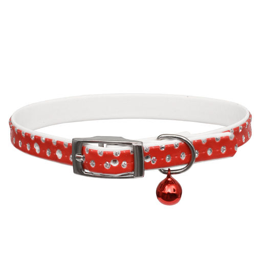 Ошейник "Дивелла" двойной, с блестками и бубенчиком, для кошек, красный, шир. 10мм 00210115-02 25ка23