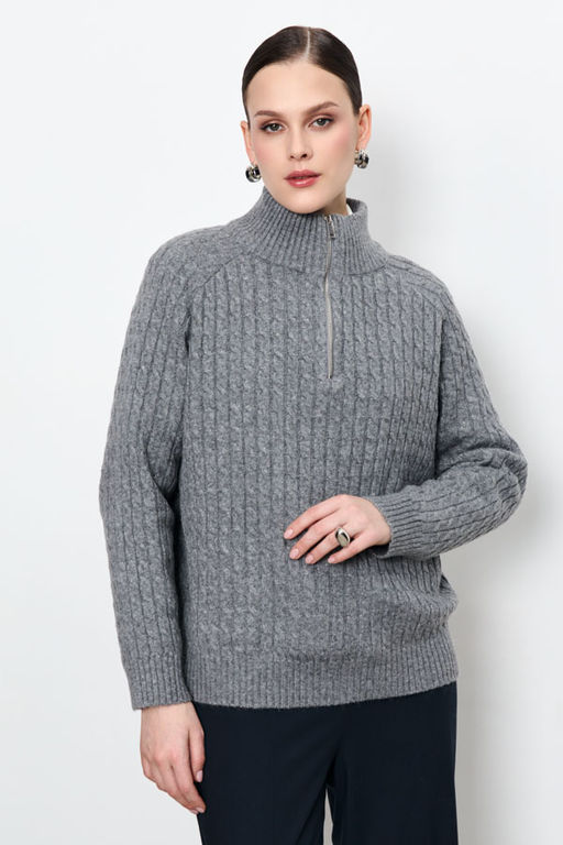 Представляем вам уютный и стильный джемпер, который станет незаменимой вещью в вашем гардеробе! Свободный силуэт дарит максимальный комфорт и не стесняет движений. Изюминка образа косы, добавляющие фактуры и уюта. Удобный рукав реглан обеспечивает идеальную посадку по плечам. Спереди джемпер застегивается на эффектную металлическую молнию, которая добавляет современный акцент. Воротник-стойка надежно защитит от ветра. Низ изделия и манжеты рукавов оформлены резинкой. Этот джемпер идеальный выбор для тех, кто ценит комфорт, качество и актуальный дизайн! Изделие выполнено из меланжевой пряжи.