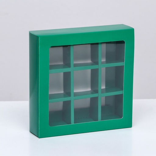 Цена за 2 шт. Коробка для 9 конфет, изумрудная, 14.5×14.5×3.5 см