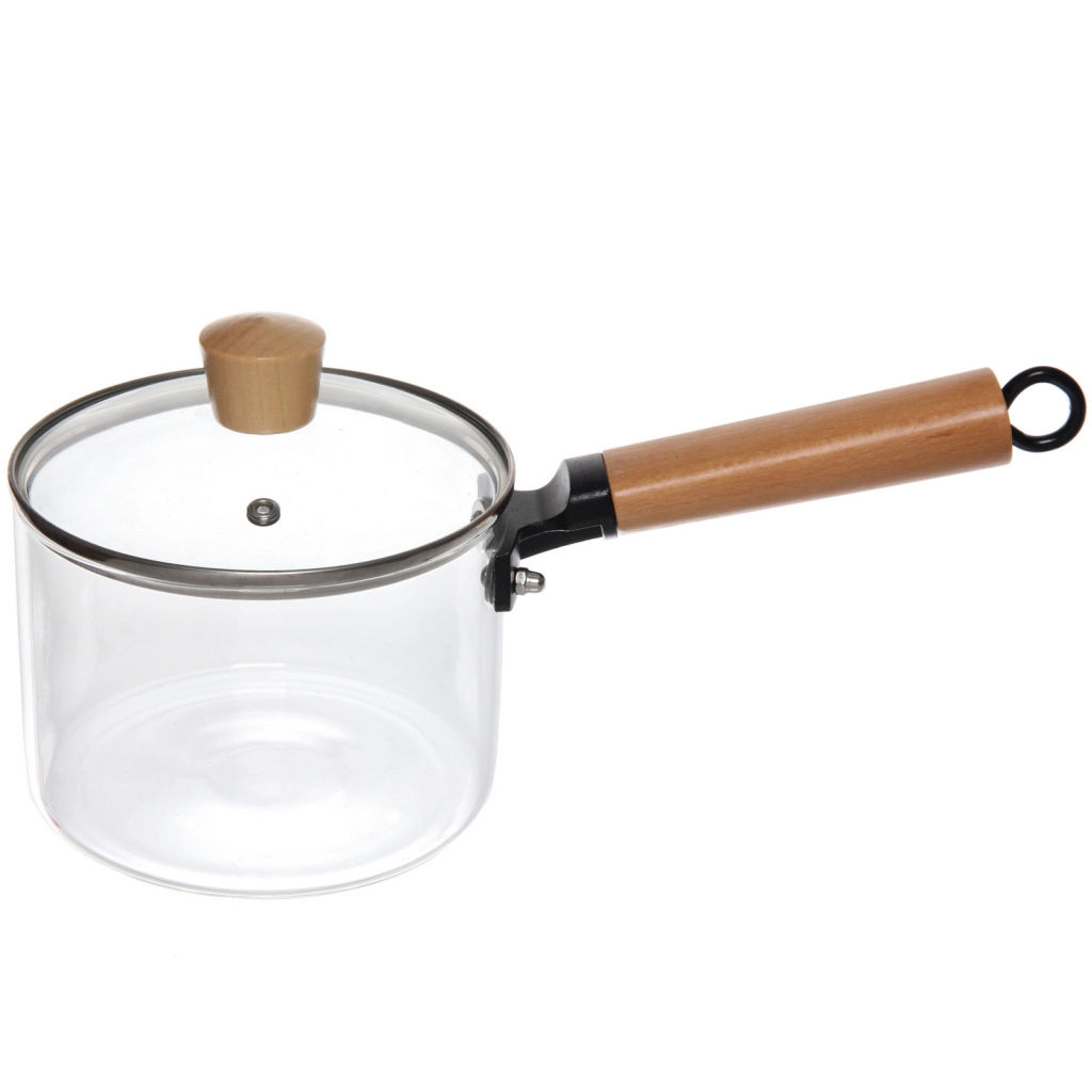Кастрюля из боросиликатного стекла 1,5л "Хай-Тек" с деревянной ручкой