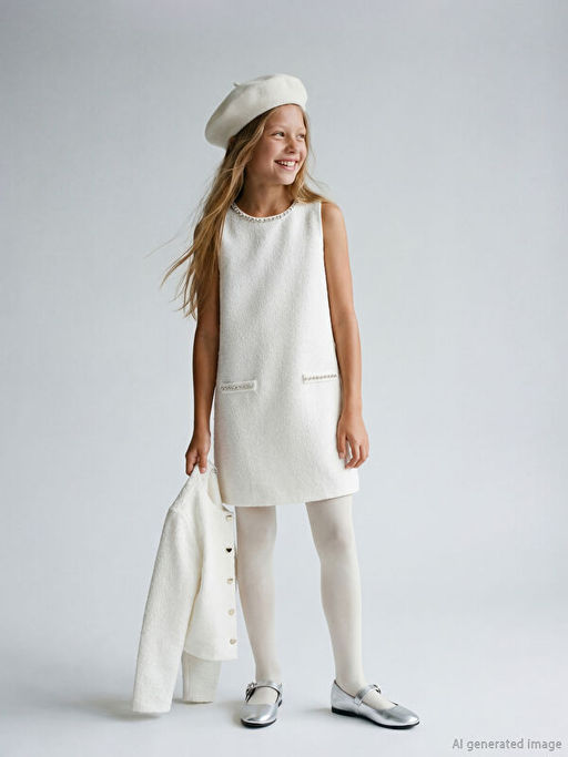 • Bisiklet Yaka Ta?l? K?z ?ocuk T?vit Elbise