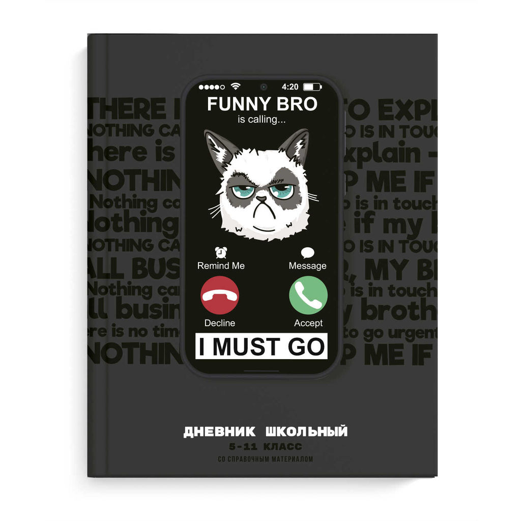Дневник школьный 5-11 класс арт. 69720 ХМУРЫЙ КОТ / твёрдый переплёт 7БЦ, А5+, 48 л., глянцевая ламинация, печать в одну краску (пантон) ,