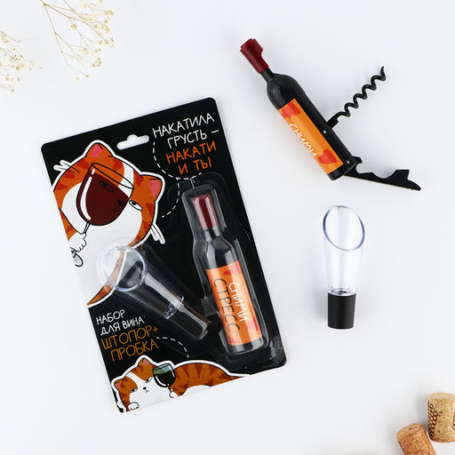 Набор: Да. Для кого: Унисекс. В наборе, шт.: 2. Вид упаковки: Подложка. Тематика праздника: 23 Февраля. Тематика праздника: 8 Марта. Тематика праздника: Универсальная тематика. Адресат: Без адресата. Составляющие набора: Штопор. Составляющие набора: Пробка-дозатор. Возраст: Для взрослых. Можно мыть в посудомоечной машине: Нет. Бесплатная доставка: Да. Наша разработка: Да. Размеры товара: 19.9/2/12.3.