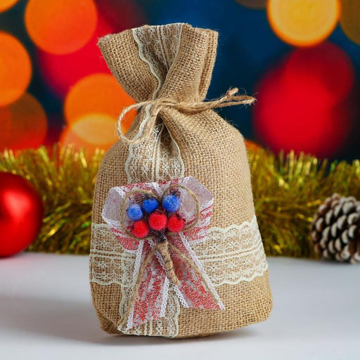 • Мешок новогодний "Цветочные украшения", мешковина, 17х24 см, 650 гр,