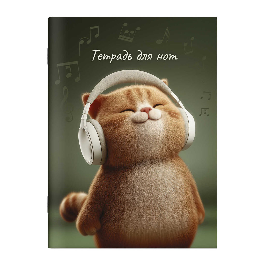 • Тетрадь для нот 32 л. арт. 73250 КОТ-МЕЛОМАН /А4, белый офсет, мягкий переплёт (2 скобы), облож.- ме