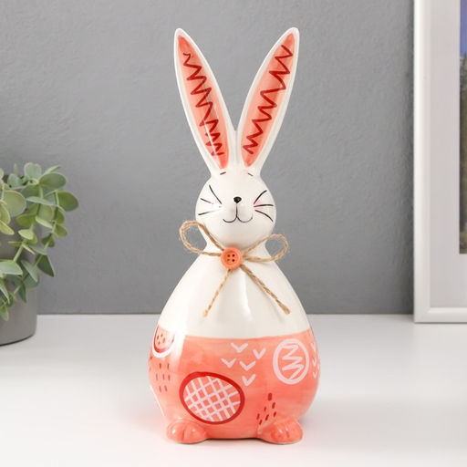 • Фигурка керамика Кролик сонный с бантиком, бело-персиковый, 11.8?10.5?24.2 см