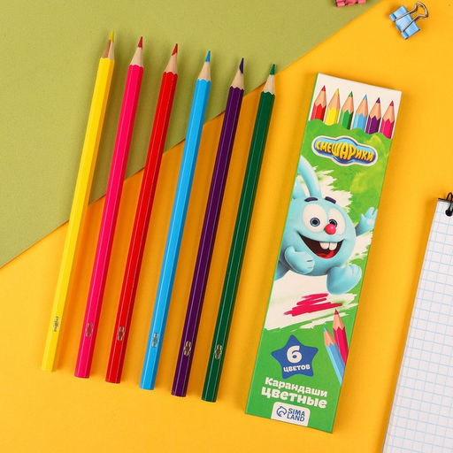 • Карандаши 6 цветов "Крош", заточенные, шестигранные, картонная упаковка, европодвес, Смешарики