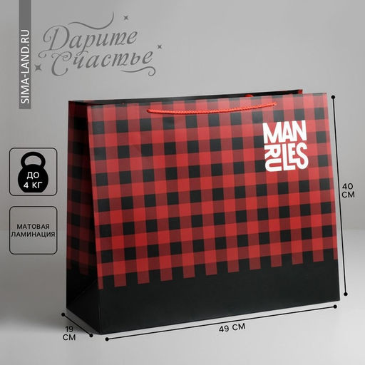• Пакет подарочный ламинированный, упаковка, «Man rules», XL 49×40×19 см