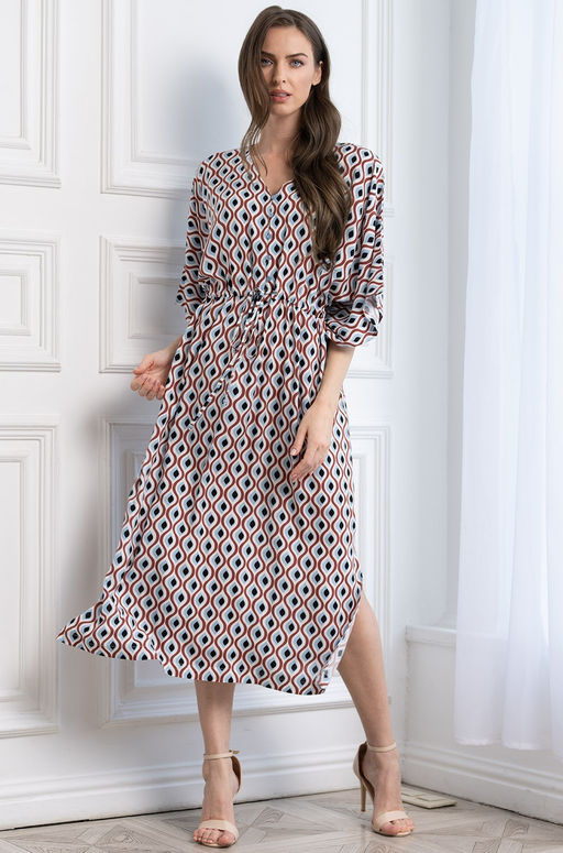 Длинная туника Mia-Amore с подрезом на уровне талии и завязкой, V-образной горловиной. У модели удлинённый цельнокроенный рукав. По бокам туники карманы и разрезы. Состав:100% вискоза
