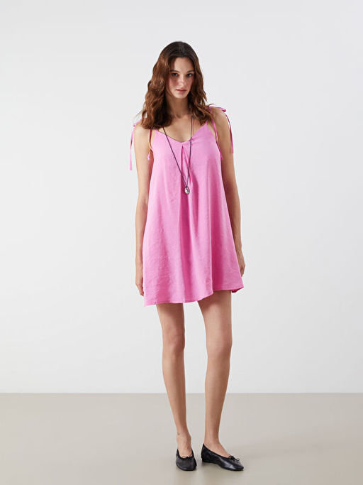V Yaka Ask?l? Modal Kar???ml? Mini Elbise