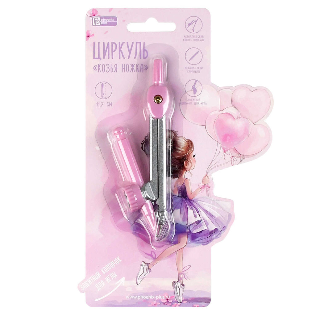 • Циркуль "Козья ножка" , БАЛЕРИНА С ВОЗДУШНЫМИ ШАРИКАМИ арт.73032/ 24 длина циркуля:11,7 см, ПВХ-блис