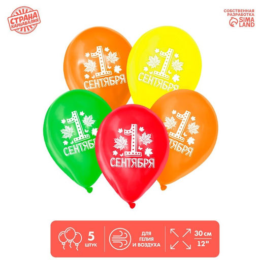 • Цена за 2 шт. Воздушные шары латексные 12" «С 1 сентября», 5 шт., МИКС
