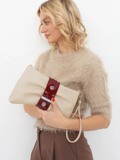 Эффектная модель в форме банта, выполнена из экокожи. Дополнена серебристой фурнитурой. Данная модель закрывается на хлястик, носится на плече, в комплекте имеется ремень с регулировкой длины . Или в руке за петельку. Каркас полужесткий.