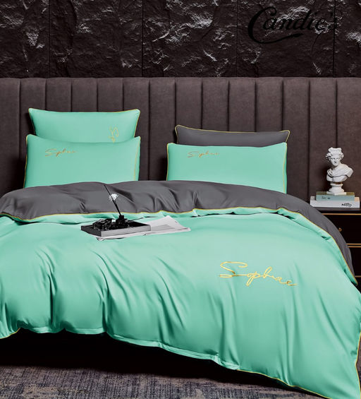 КПБ Candies однотонный с вышивкой на резинке по кругу CANOVR022 Евро