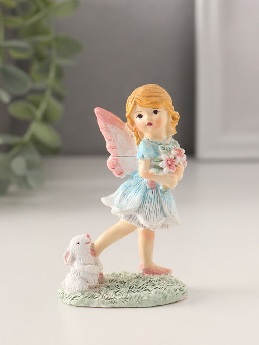 • Фигурка полистоун Девочка-фея с кроликом, охапкой цветов, 5.5?4?9 см
