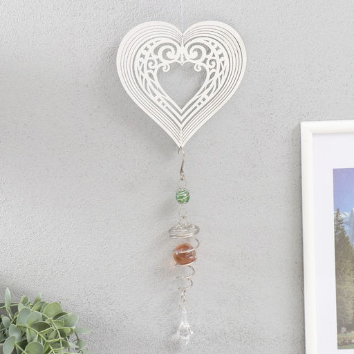 • Музыка ветра Ветряной колокольчик и ажурное сердце, металл, с бусиной, 13.5?13.5?31 см