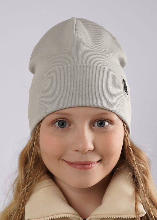 Шапка двойная с отворотом, декорирована стильной нашивкой. Изготовлена из хлопка. Размер 52-54 95%Хлопок5%ПУ(эластан)